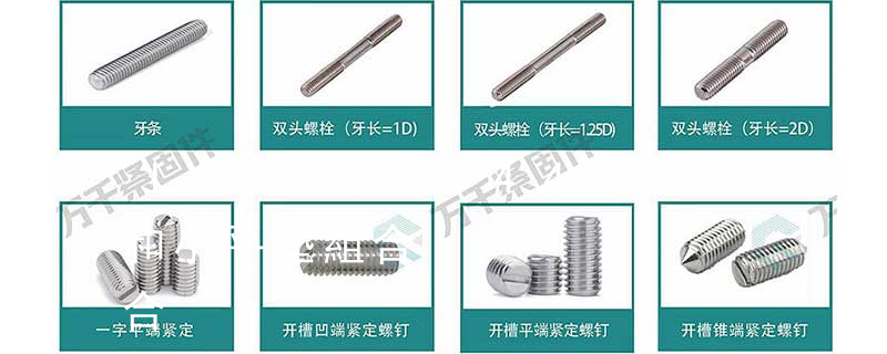 圓柱頭蚴釘 Slotted capstan screws 開槽長(zhǎng)圓柱端 緊定螺釘 Slotted set srews with full dog point 開槽平端 緊定螺釘(半牙) Slotted set srews with chamfered end 小六角特薄細(xì)牙 螺母 Pip nuts with thread 外舌