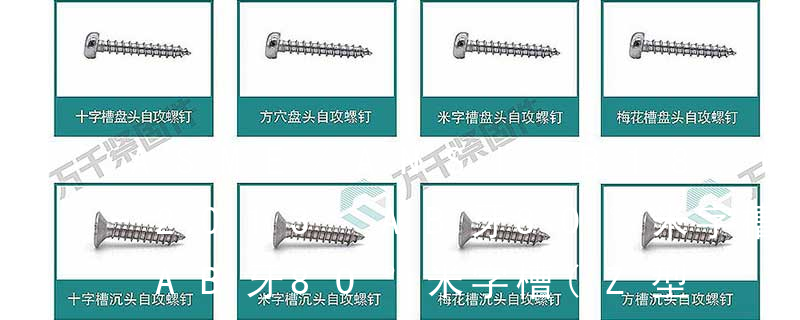 B:球面圓柱頭; C:圓柱頭; F(K):沉頭; H:六角頭;HW:六角頭帶墊圈; O:半沉頭; P:平元頭; R:半元頭;PW:平元頭帶墊圈; T:大扁頭; V:蘑菇頭;④ 螺釘牙型 A:自攻尖尾(日標第1種)疏 自切自攻螺釘有以下幾種型式:十字槽盤頭自切自攻螺釘,十字槽沉頭自切自攻螺釘。十字槽半沉頭自切自攻螺釘,六角頭自切自攻螺釘。3、自擠自攻螺釘(自攻鎖緊螺釘)自擠自攻螺釘的螺紋一般為機螺紋,很少采用自攻螺紋。在扳擰