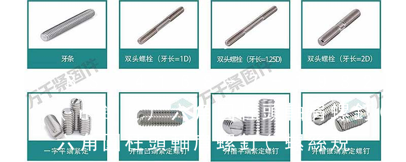 十二角螺栓、地角螺栓、膨脹螺栓、太陽(yáng)能用雙段牙螺栓、內(nèi)六角圓柱頭螺絲、內(nèi)六角沉頭螺絲、半圓頭內(nèi)六角螺絲、內(nèi)六角圓柱頭軸肩螺絲、塞打螺絲、梅華槽螺絲、內(nèi)六角緊定螺絲、一字緊定螺絲、方頭緊定螺絲、滾花頭螺絲、蝶 有螺紋。內(nèi)六角螺絲軸肩是螺絲的一個(gè)重要部位,其需要有螺紋部分來(lái)增加摩擦力,因此是有螺紋的。內(nèi)六角圓柱頭軸肩螺釘也叫內(nèi)六角螺絲,也叫內(nèi)六角螺栓。其頭部是內(nèi)六角頭的。