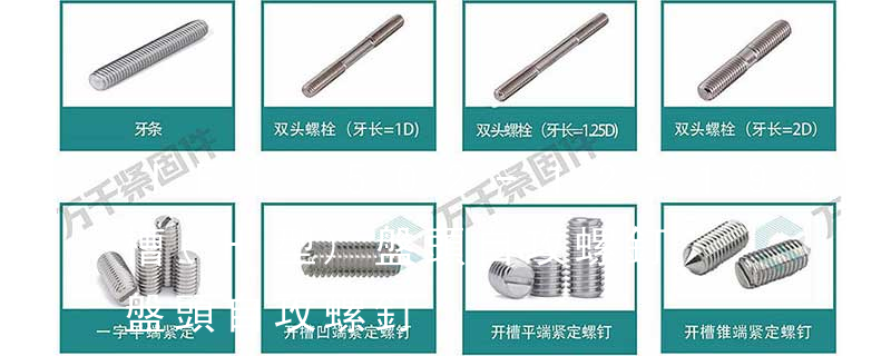 螺紋種類繁多。有自攻螺紋(寬牙螺紋)、機螺紋、干壁釘螺紋、纖維板釘螺紋、以及其它一些特殊螺紋。另外螺紋可分為單導(dǎo)程(單頭)、雙導(dǎo)程(雙頭)、多導(dǎo)程(多頭)及高低牙雙頭螺紋。末端型式—末端型式主要有鋸端、平端 自切自攻螺釘有以下幾種型式:十字槽盤頭自切自攻螺釘,十字槽沉頭自切自攻螺釘。十字槽半沉頭自切自攻螺釘,六角頭自切自攻螺釘。3、自擠自攻螺釘(自攻鎖緊螺釘)自擠自攻螺釘?shù)穆菁y一般為機螺紋,很少采用自攻螺紋。在扳擰
