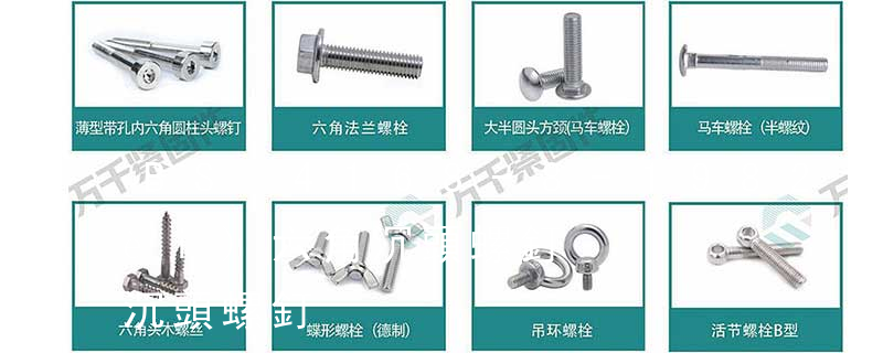 螺栓有:1、方頭螺栓,2、半圓頭方頸螺栓,3、十字槽盤頭螺釘,4、內(nèi)六角沉頭螺釘,5、方螺母C級,6、蝶形螺母,7、六角頭螺栓,8、十字槽盤頭自攻螺釘。大小有M18、M6、M8、M16、M10、M12、M14、M20等型號。通常用
